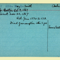 Description: Personnel card for Mary E. Lowry an employee of the American Board