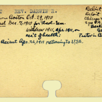 Description: Personnel card for Darwin R. Leavitt an employee of the American Board