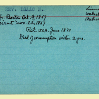 Description: Personnel card for Isaac N. Lowry an employee of the American Board