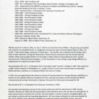 Description: Memorial record for Martha Millett, an employee of the American Board