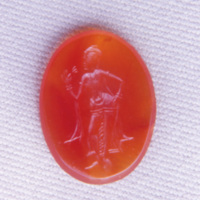 Lakshmi carved on a carnelian gemstone