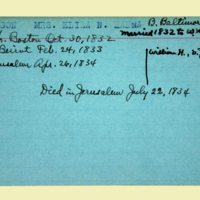 Description: Personnel card for Pliny Fisk, employee of the American Board