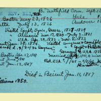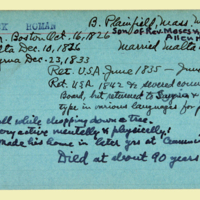 Description: Personnel card for Pliny Fisk, employee of the American Board
