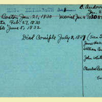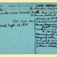 Description: Personnel card for Elizabeth Fleet Andrews Hallock an employee of the American Board
