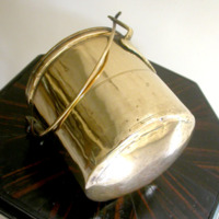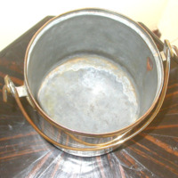 Milk pot with handle, cylindrical form with slightly rounded base.