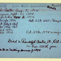 Description: Personnel card for Mary E. Nichols Nutting an employee of the American Board