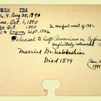 Description: Personnel card for Ida Mellinger an employee of the American Board