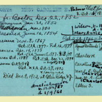 Description: Personnel card for Caroline E. Palmer Farnsworthan, employee of the American Board