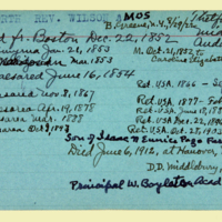 Description: Personnel card for Wilson A. Farnsworth, employee of the American Board