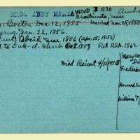 Description: Personnel card for Abby M. Bliss, an employee of the American Board