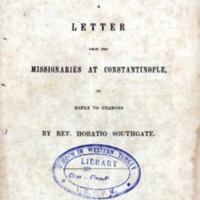 Description: Response of American Board missionaries, at Constantinople, to charges by Rev. Horatio Southgate, a missionary of the Episcopal Society, which threatened to disrupt the peace and unity of the Episcopal churches of England and America.