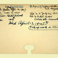 Description: Personnel card for Elizabeth F. Barrows Ussher an employee of the American Board