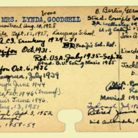 Description: Personnel card for Lynda I. Goodsell, an employee of the American Board
