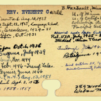Description: Personnel card for Everett C. Blake, an employee of the American Board