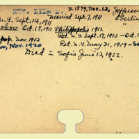 Description: Personnel card for Alma S. Woodruff an employee of the American Board