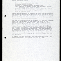 Description: Memorial record for Jessie Elizabeth Martin, an employee of the American Board