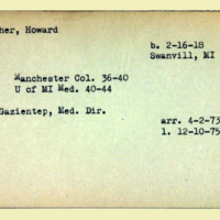 Description: Personnel card for Howard (2) Kaliher an employee of the American Board