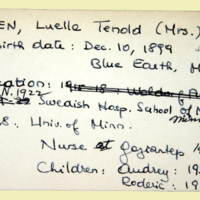Description: Personnel card for Luelle T. Monsen an employee of the American Board