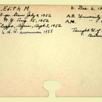 Description: Personnel card for Edith M. Marken an employee of the American Board