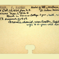 Description: Personnel card for J. Harvey Renfrew an employee of the American Board