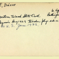 Description: Personnel card for Dianne Grace, an employee of the American Board