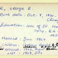 Description: Personnel card for George E. Behr, an employee of the American Board