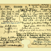 Description: Personnel card for George E. White an employee of the American Board