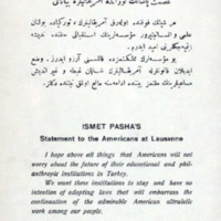 Description: Ismet Pasha's statement to the Americans at Lausanne, in Ottoman Turkish and English