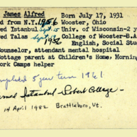 Description: Personnel card for James A. Johnson an employee of the American Board