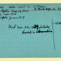 Description: Personnel card for Mary R. Rowland Houston an employee of the American Board