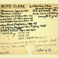 Description: Personnel card for Alice C. Reed an employee of the American Board