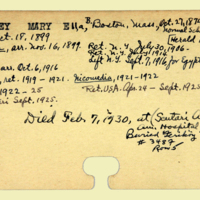Description: Personnel card for Mary E. Kinney an employee of the American Board