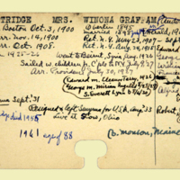 Description: Personnel card for Winona Graffam Partridge an employee of the American Board