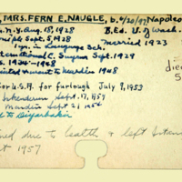 Description: Personnel card for Fern E. Naugle White an employee of the American Board