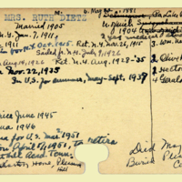 Description: Personnel card for Ruth M. Dietz Haas an employee of the American Board