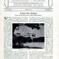 Description: Newsletter of Robert College, Constantinople; American University of Beirut, Syria; Constantinople Women's College; International College, Smyrna; Sofia American College, Bulgaria; and Athens College, Greece, vol. 8, no. 2, April 1927.