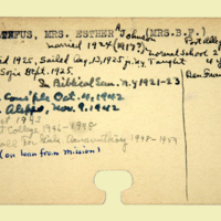 Description: Personnel card for Esther Stoltzfus an employee of the American Board