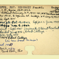 Description: Personnel card for Benjamin F. Stoltzfus an employee of the American Board
