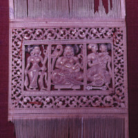 Description: This slide was made from a photograph available in the Department of Archaeology. An erotic scene associated with Hindu belief, this particular wood carving is found on a processional car at the Hindu temple at Palali in Jaffna. It is thought to be fairly old.