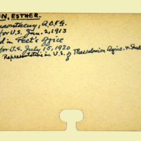 Description: Personnel card for Esther Sutton an employee of the American Board