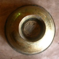 Shallow footed bowl for washing raw rice, with thick inward turned lip, and deep grooved interior, designed to retain stones while washing.