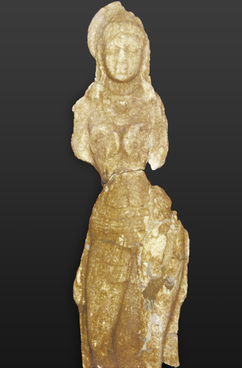 Excavated in 1982 this figure was found immediately outside the southern Vahalkada (gateway) of the Jetavanarama stupa is this fragmentary yet massive limestone figure of a goddess. The image probably belongs to the 3rd century A.D. The lotus head-dress suggests that it is a deity, perhaps a guardian goddess. It is presently housed in the site Museum of the Jetavanarama Cultural Triangle Project at Anuradhapura, Sri Lanka.