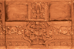 The pancanarighata, or ‘5 women pot’ is a symbolic formation of women in various acrobatic stances. Adorning the lintel of a wooden doorway at the Dippitiya Vihare in the Kegalle district, Sri Lanka, is this pancanarighata. It is a popular decorative device of 18th century A.D. Kandy.