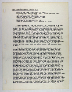 Memorial record for Alphaeus N. Andrus, an employee of the American Board