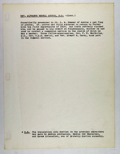 Amerikan Bord Heyeti (American Board), Istanbul, "Memorial records for Alphaeus N. Andrus," American Research Institute in Turkey, Istanbul Center Library, online in Digital Library for International Research Archive, Item #16661, http://www.dlir.org/archive/items/show/16661 (accessed April 30, 2026).