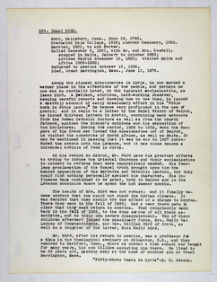 Amerikan Bord Heyeti (American Board), Istanbul, "Memorial records for Isaac Bird ," American Research Institute in Turkey, Istanbul Center Library, online in Digital Library for International Research Archive, Item #16716, http://www.dlir.org/archive/items/show/16716 (accessed April 30, 2026).