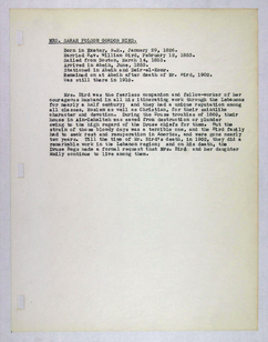 Amerikan Bord Heyeti (American Board), Istanbul, "Memorial records for Sarah F.G. Bird ," American Research Institute in Turkey, Istanbul Center Library, online in Digital Library for International Research Archive, Item #16717, http://www.dlir.org/archive/items/show/16717 (accessed April 30, 2026).