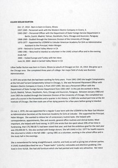 Memorial record for Lillian Sedlar Burton, an employee of the American Board