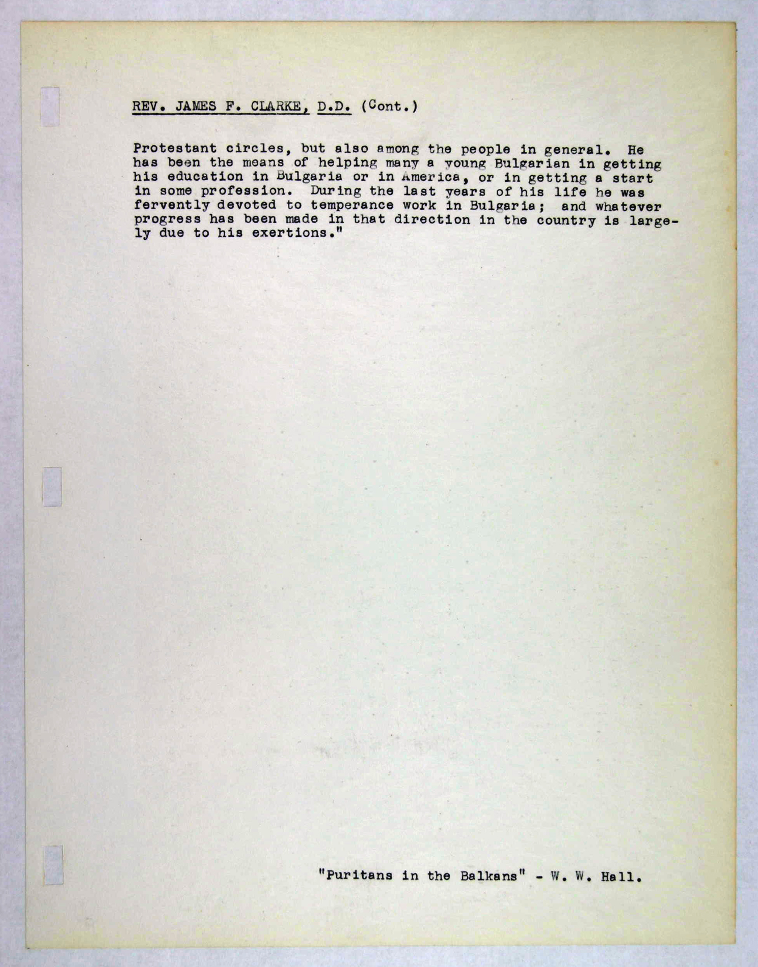 Amerikan Bord Heyeti (American Board), Istanbul, "Memorial records for James F. Clarke," American Research Institute in Turkey, Istanbul Center Library, online in Digital Library for International Research Archive, Item #16794, http://www.dlir.org/archive/items/show/16794 (accessed April 30, 2026).