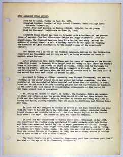 Amerikan Bord Heyeti (American Board), Istanbul, "Memorial records for Adelaide S. Dwight," American Research Institute in Turkey, Istanbul Center Library, online in Digital Library for International Research Archive, Item #16847, http://www.dlir.org/archive/items/show/16847 (accessed April 30, 2026).